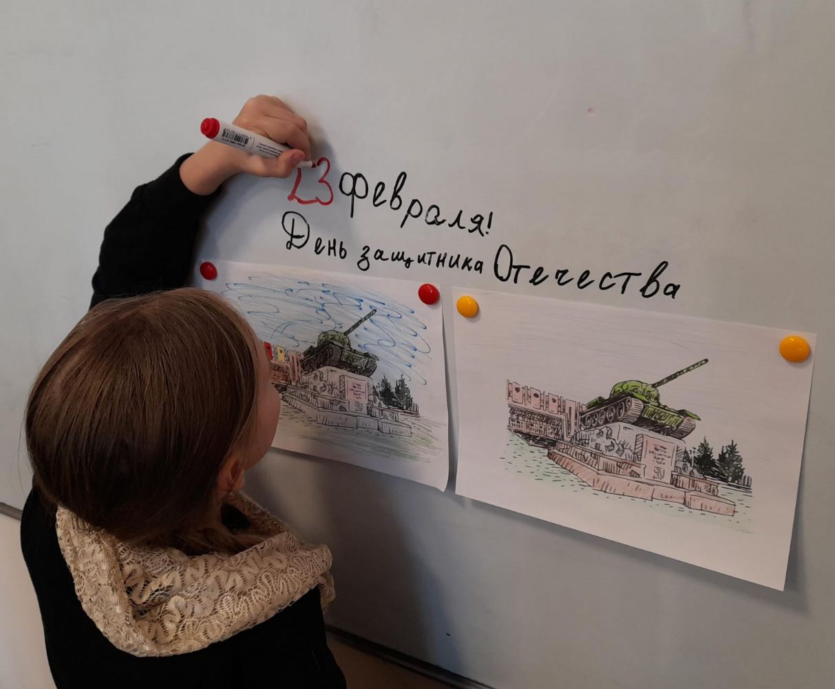 Дети на занятии разукрасили раскраску "Танк Т-34".