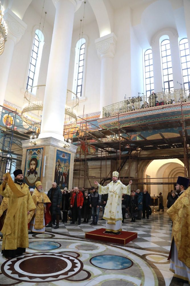 На сугубой ектении глава Приморской митрополии вознес молитвы ко Господу о Святой Руси и завершении строительства Спасо-Преображенского кафедрального собора г. Владивостока.