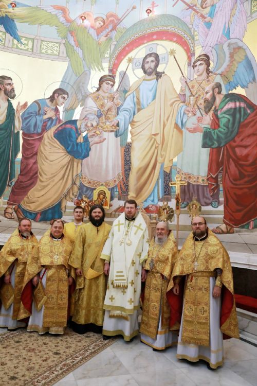 Его Высокопреосвященству сослужили: клирик Бельцкой епархии Православной Церкви Молдовы протоиерей Иоанн Чунчук; ключарь собора, благочинный I Владивостокского благочиния Владивостокской епархии протоиерей Сергий Шуталев; игумен Антоний (Каменчук); иерей Максим Точуков.