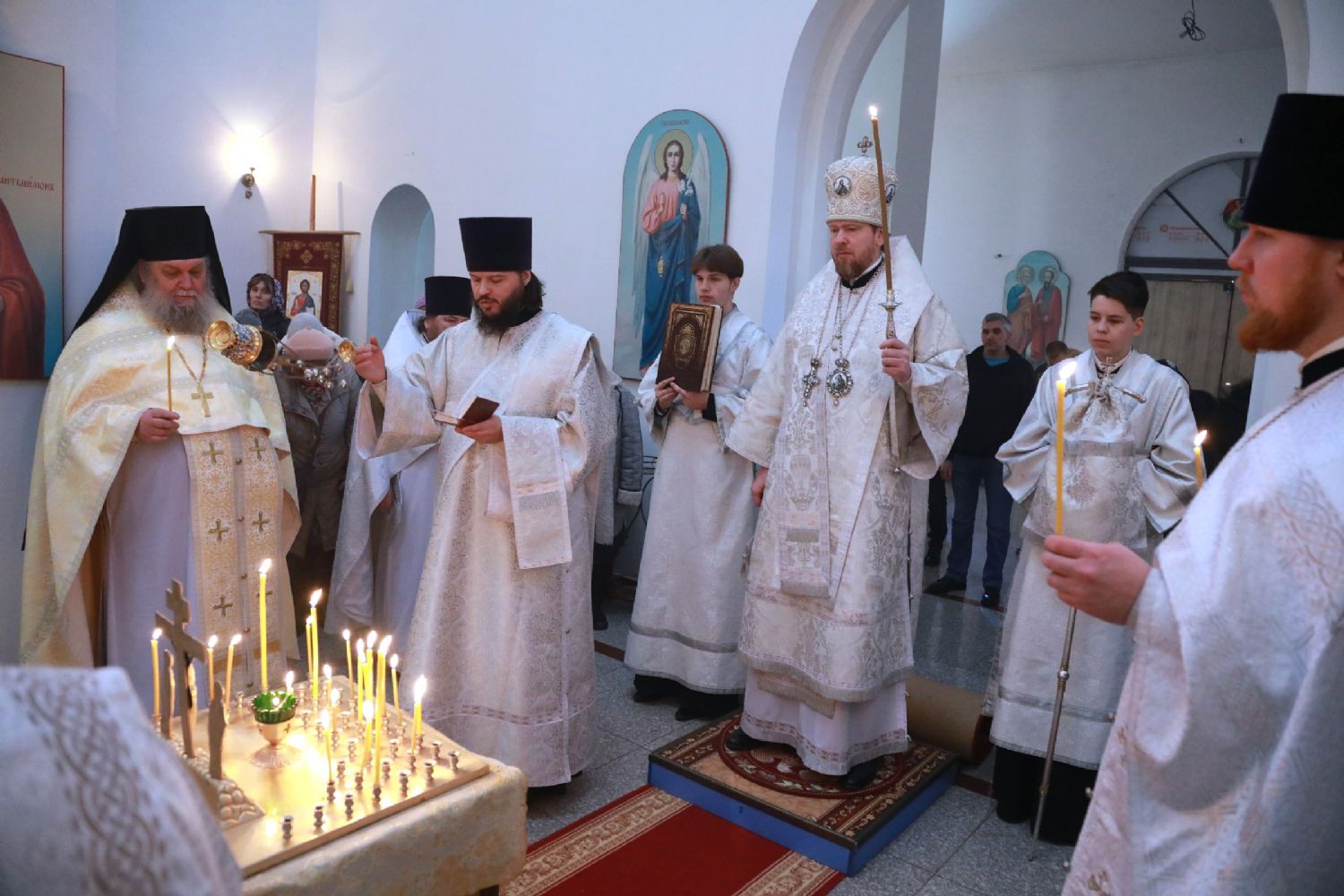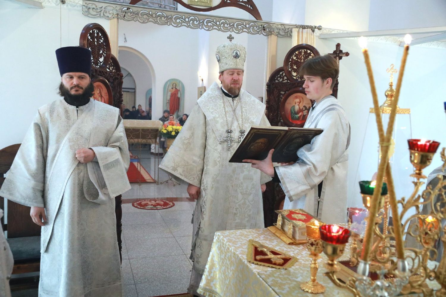 Его Высокопреосвященству сослужили: благочинный II Владивостокского и Артемовского благочиний Владивостокской епархии, ключарь Свято-Никольского кафедрального собора г. Владивостока протоиерей Иоанн Сергеев; благочинный I Владивостокского благочиния, ключарь Спасо-Преображенского собора протоиерей Сергий Шуталев; настоятель Петропавловского храма иеромонах Кирилл (Корниенко); заместитель благочинного I Владивостокского благочиния иерей Михаил Тутаев.