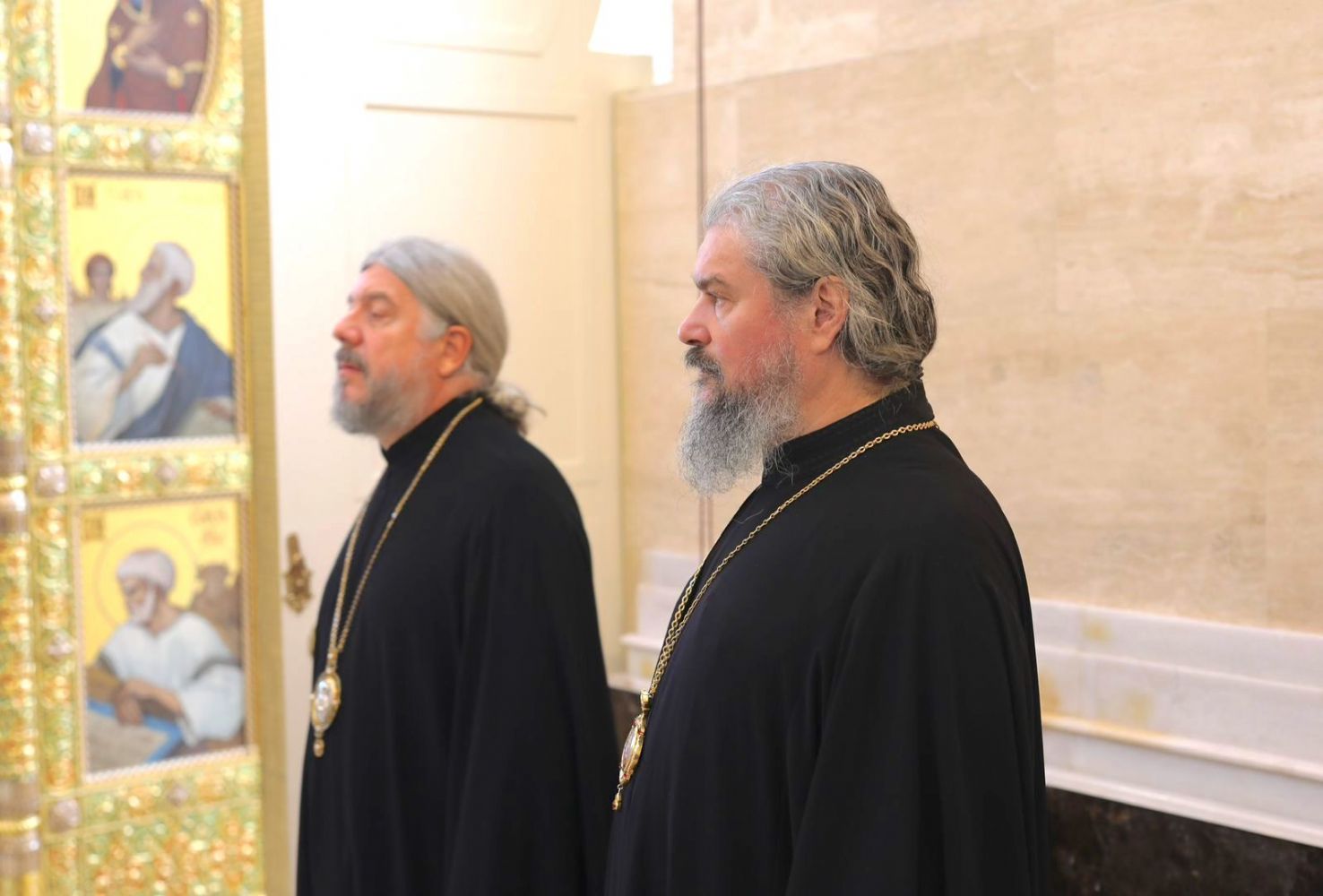 Преосвященным владыкам сослужили: ключарь собора, благочинный I Владивостокского благочиния Владивостокской епархии протоиерей Сергий Шуталев; благочинный Уссурийского благочиния протоиерей Андрей Машанов; протоиерей Даниил Нефедьев; иерей Максим Точуков.