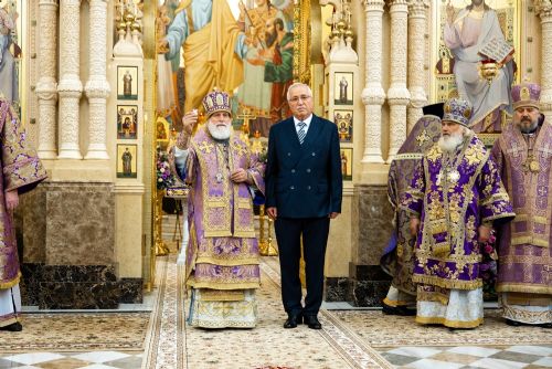 По окончании богослужения состоялась церемония награждения ктиторов и активных участников строительства собора Патриаршими наградами.