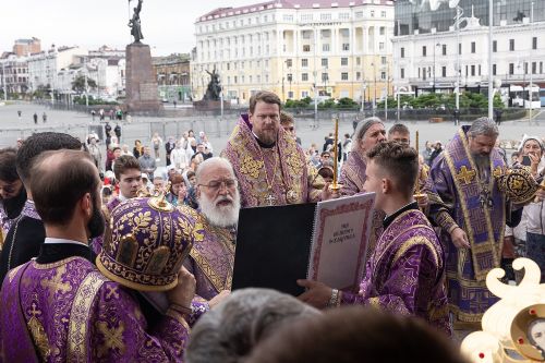 Свято-Никольскому собору г. Владивостока, ранее имевшему статус кафедрального, быть приходским с сохранением наименования «Свято-Никольский собор г. Владивостока» и с правом совершения в нем Божественной литургии с отверстыми царскими вратами по «Отче наш».