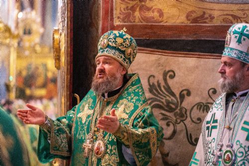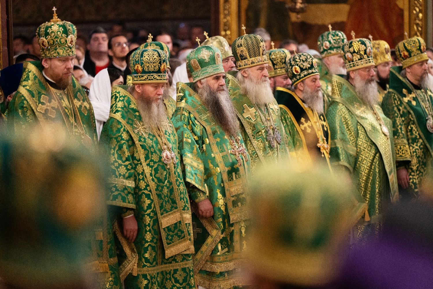 В соборе молились архиереи, настоятельницы женских монастырей, священнослужители, монашествующие и паломники, прибывшие на торжества в Троице-Сергиеву лавру.