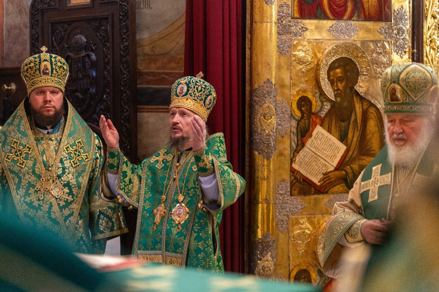Его Святейшеству сослужили: митрополит Минский и Заславский Вениамин, Патриарший экзарх всея Беларуси; митрополит Воскресенский Григорий, управляющий делами Московской Патриархии; митрополит Наро-Фоминский Никандр, председатель Финансово-хозяйственного управления Московского Патриархата; митрополит Самарский и Новокуйбышевский Сергий; митрополит Тобольский и Тюменский Димитрий; митрополит Курский и Рыльский Герман; митрополит Белгородский и Старооскольский Иоанн; митрополит Йошкар-Олинский и Марийский Иоанн; митрополит Казанский и Татарстанский Кирилл; митрополит Иваново-Вознесенский и Вичугский Иосиф; митрополит Балтийский и Светлогорский Серафим; митрополит Курганский и Белозерский Даниил; митрополит Каширский Феогност, председатель Синодального отдела по монастырям и монашеству; митрополит Тамбовский и Рассказовский Феодосий; митрополит Нижегородский и Арзамасский Георгий; митрополит Сингапурский и Юго-Восточно-Азиатский Сергий, Патриарший экзарх Юго-Восточной Азии; митрополит Луганский и Алчевский Пантелеимон; митрополит Хабаровский и Приамурский Артемий; митрополит Владивостокский и Приморский Владимир; митрополит Пензенский и Нижнеломовский Серафим; митрополит Смоленский и Дорогобужский Исидор; митрополит Костромской и Нерехтский Ферапонт; митрополит Симферопольский и Крымский Тихон, председатель Патриаршего совета по культуре; митрополит Псковский и Порховский Матфей; митрополит Звенигородский Арсений; митрополит Екатеринодарский и Кубанский Василий; архиепископ Салехардский и Ново-Уренгойский Николай; архиепископ Новороссийский и Геленджикский Каллистрат; архиепископ Одинцовский и Красногорский Фома, руководитель Административного секретариата Московской Патриархии; архиепископ Зеленоградский Савва, заместитель управляющего делами Московской Патриархии; епископ Видновский Тихон; епископ Находкинский и Преображенский Николай; епископ Губкинский и Грайворонский Софроний; епископ Бердянский и Приморский Феодор; епископ Ишимский и Аромашевский Тихон; епископ Норильский и Туруханский Агафангел; епископ Ейский и Тимашевский Павел; епископ Истринский Серафим, председатель Синодального отдела по делам молодежи; епископ Джанкойский и Раздольненский Алексий; епископ Луховицкий Евфимий, председатель Синодального миссионерского отдела; епископ Сергиево-Посадский и Дмитровский Кирилл, наместник Троице-Сергиевой лавры, ректор Московской духовной академии; епископ Троицкий и Южноуральский Павел; епископ Раменский Алексий, личный секретарь Святейшего Патриарха Кирилла; протопресвитер Владимир Диваков, секретарь Святейшего Патриарха по г. Москве; протоиерей Дионисий Казанцев, секретарь Святейшего Патриарха по Московской области; архимандрит Макарий (Веретенников), насельник Троице-Сергиевой лавры; архимандрит Иеремия (Соловьев), насельник Троице-Сергиевой лавры; насельники Троице-Сергиевой лавры в священном сане; сонм духовенства.