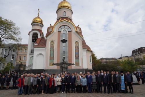 Владивосток. 15 октября 2024 года Торжественный митинг и церемония возложения цветов к Мемориалу памяти воинов правопорядка, погибших при исполнении служебного долга, состоялась на территории Храма Святого Игоря Черниговского.