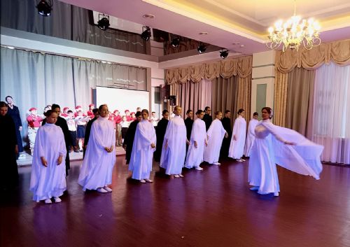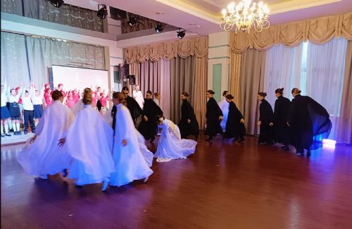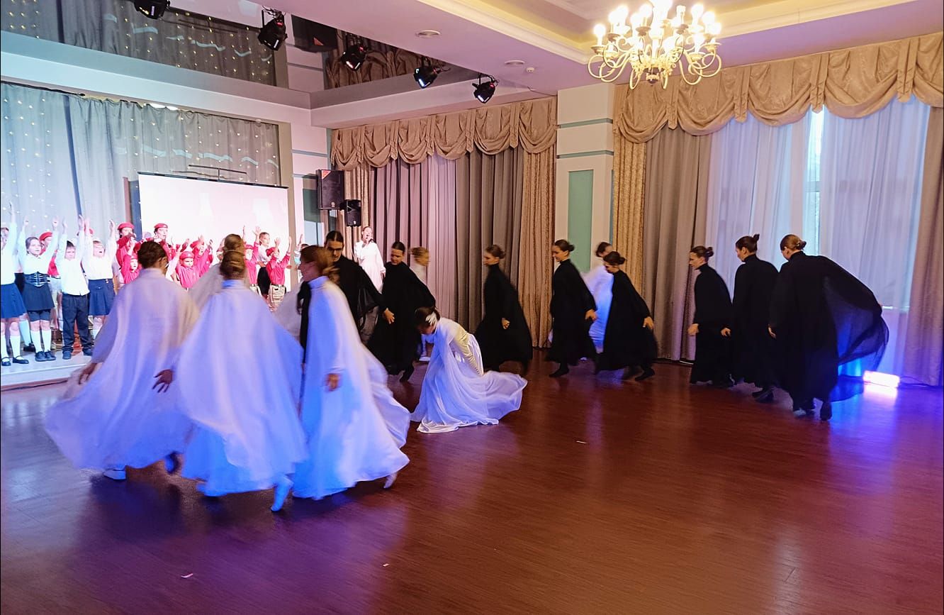 С танцевальным представлением на концерте выступили участники молодежного отдела Покровского храма г. Владивостока совместно со сводным коллективом воскресных школ г. Владивостока под руководством педагога воскресной школы храма в честь Казанской Божией Матери Семёновой Ксении и руководителя отдела культуры Владивостокской епархии Лидии Сохач.