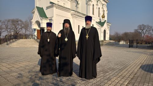 По прибытии в город архипастыря встретили благочинный Уссурийского благочиния протоиерей Андрей Машанов, настоятель Покровского храма г. Уссурийска протоиерей Сергий Якутов, настоятель Свято-Серафимовского храма г. Уссурийска протоиерей Стефан Цуркан.