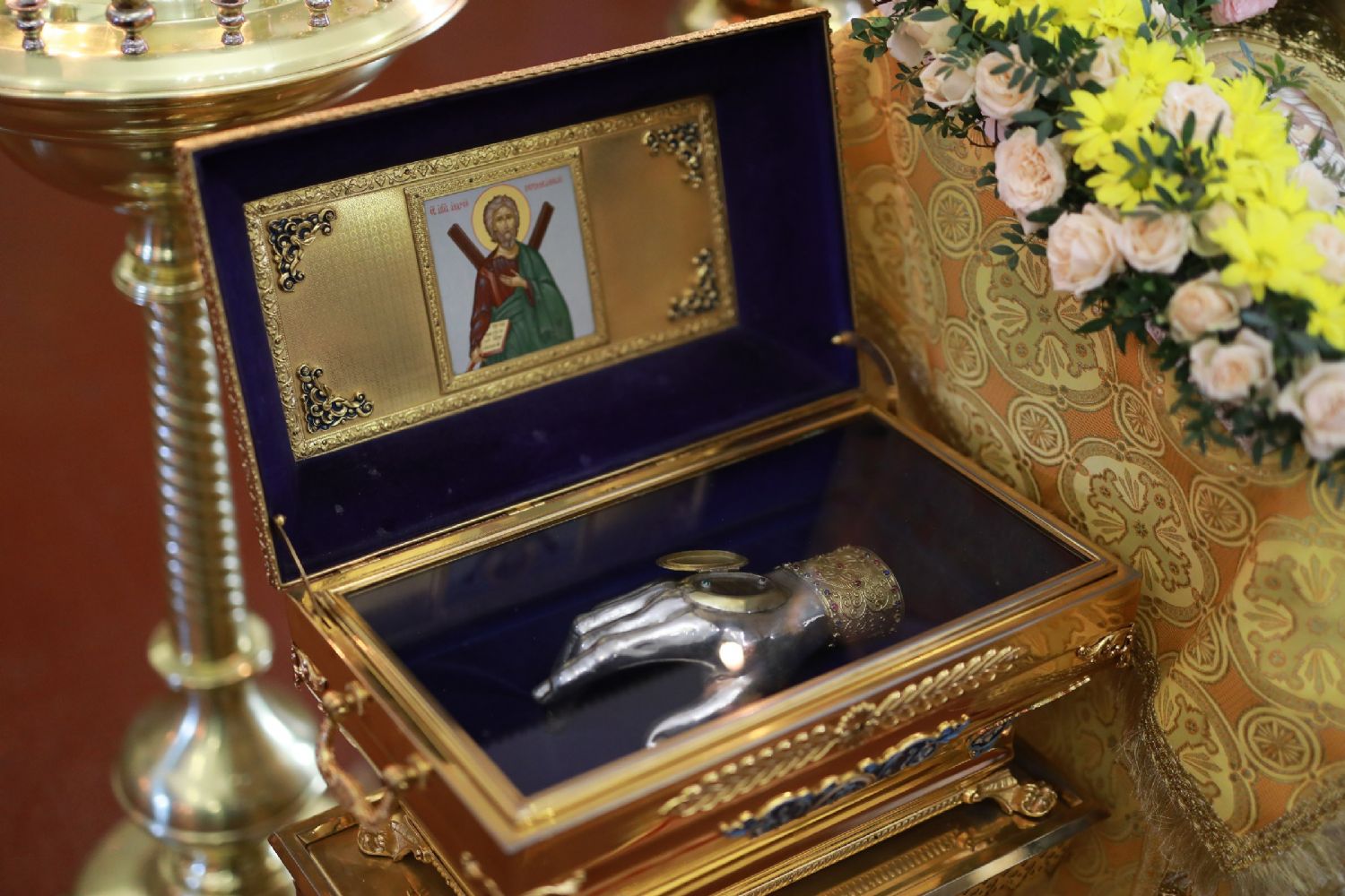 Перед началом богослужения в храм под торжественное пение тропаря из Свято-Никольского собора г. Владивостока был принесен ковчег с частицей мощей святого апостола Андрея Первозванного.