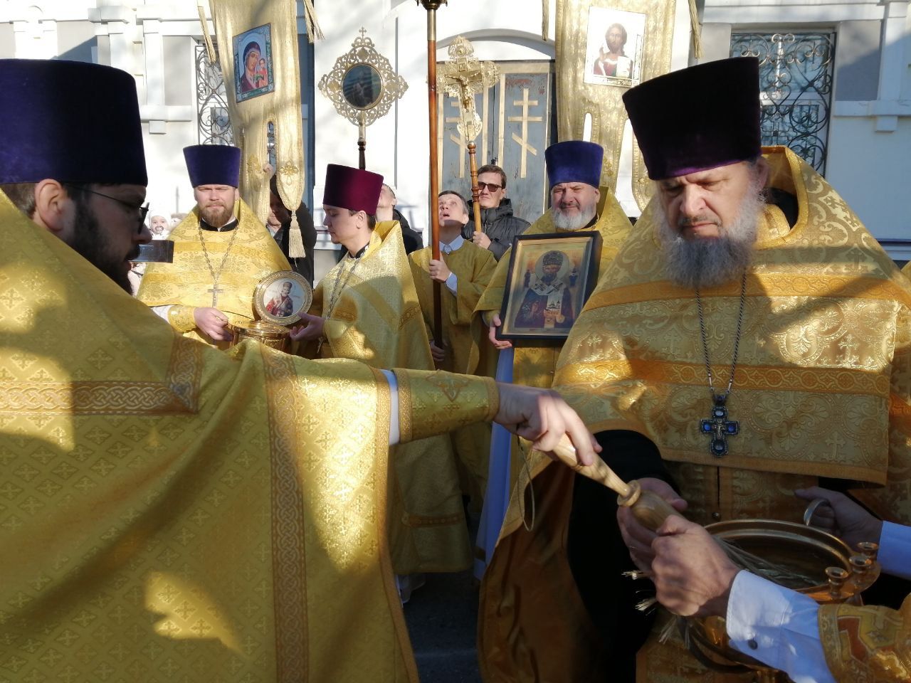 Затем собор духовенства совершил славление с чтением молитвы святителю Николаю.