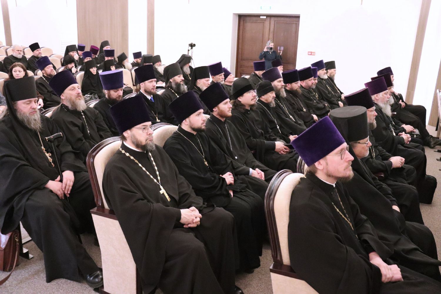 В своем докладе митрополит представил статистические данные о состоянии клира. На сегодняшний день в епархии служат 101 клирик: 85 священников (включая 24 протоиерея, 8 игуменов, 9 иеромонахов и 44 иерея) и 16 диаконов. Три клирика числятся за штатом.