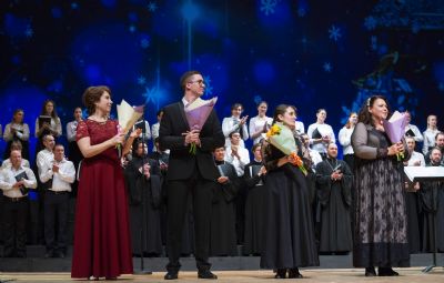 Владивосток. 11 января 2023 года на Приморской сцене Мариинского театра состоялся Большой Рождественский концерт сводного хора Владивостокской епархии, солистов, женского хора и струнного оркестра театра.