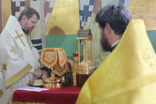 Его Высокопреосвященству сослужили: благочинный Уссурийского благочиния Владивостокской епархии, настоятель храма святителя Николая протоиерей Андрей Машанов; настоятель Покровского храма протоиерей Сергий Якутов; настоятель храма святого Пророка Божия Илии при 83-й отдельной гвардейской десантно-штурмовой бригаде иерей Сергий Качев; настоятель храма всех святых, во всем мире просиявших, при Арсенале ракетного и артиллерийского вооружения Центра материально-технического обеспечения Восточного военного округа иеромонах Платон (Карпов).