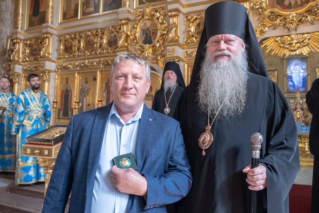 После проповеди и слов поздравления епископ Лука наградил юбилейными медалями благотворителей и строителей, участвовавших в строительстве Благовещенского кафедрального собора, которому сегодня исполнилось 20 лет.