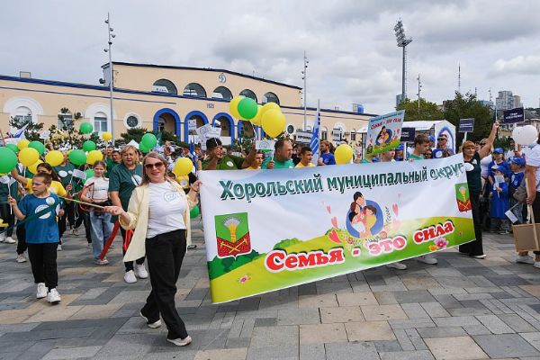 Центральным событием фестиваля стало шествие семей из 30 муниципалитетов Приморья. Около 500 многодетных семей — многие в народных костюмах, с флагами Российской Федерации — стартовало в районе улицы Батарейной, прошло по Спортивной набережной и торжественно завершило свой маршрут на главной площадке праздника.