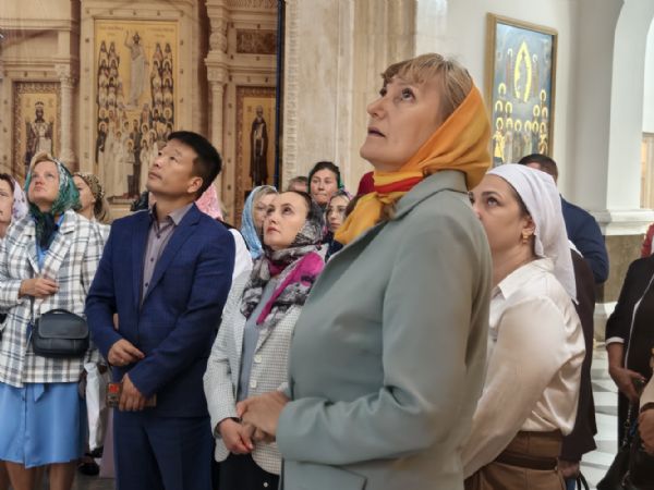 По традиции владыка Павел провёл для гостей экскурсию. Уже на входе педагогам разъяснили все слова, стоящие в именовании Спасо-Преображенского кафедрального собора. Экскурсанты узнали о празднике Преображения Господня, в честь которого он освящен, и о евангельском событии на горе Фавор, которое его прообразует. Затем было ещё несколько остановок: комментируя сюжеты различных фресок и икон, митрополит Павел вместе со слушателями совершил драматичное путешествие в историю Книги Бытия и Нового Завета, заодно проясняя духовные смыслы — и отдельной человеческой жизни, и современных событий в целом.