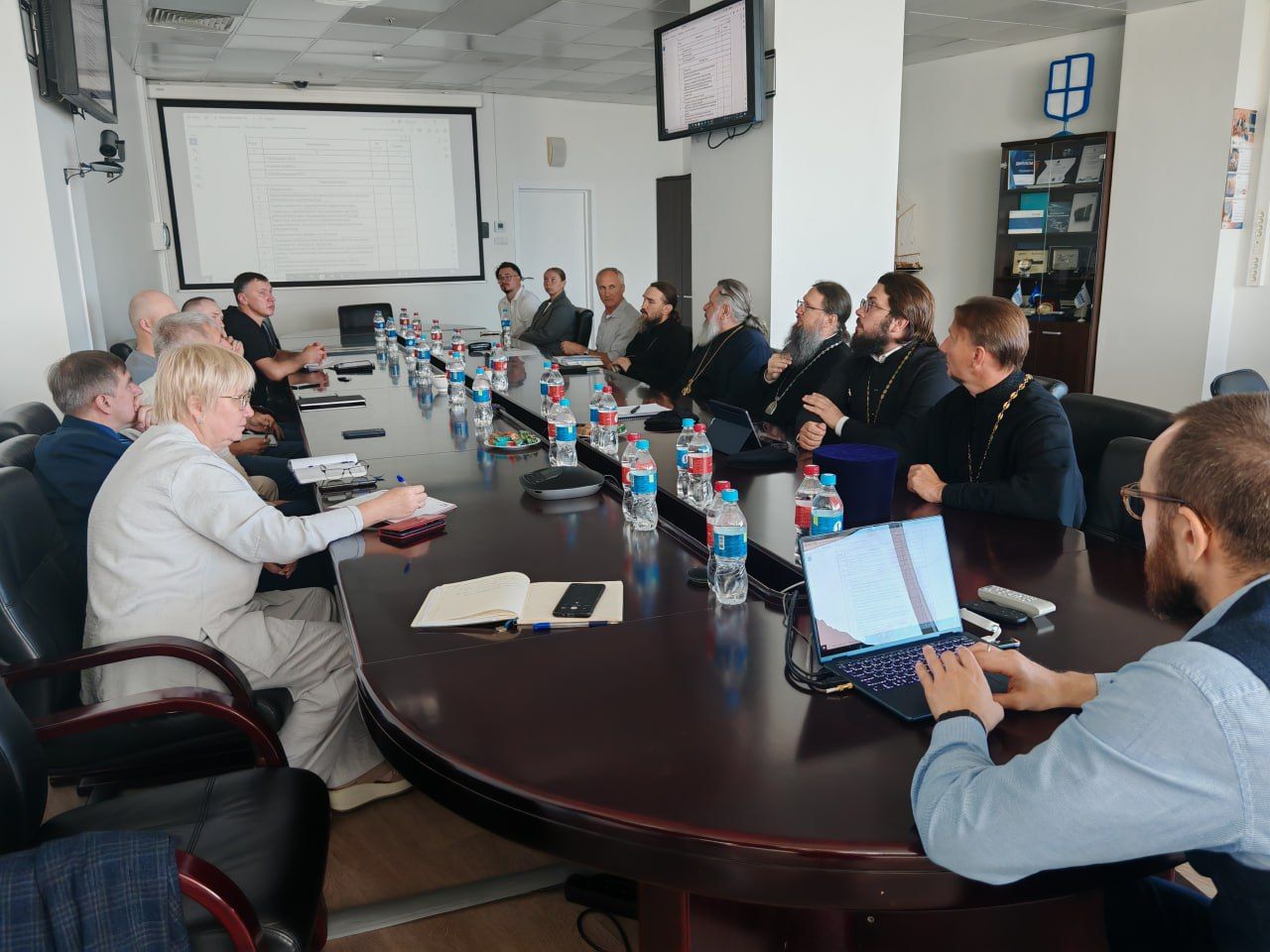 В совещании приняли участие митрополит Владивостокский и Приморский Павел, игумен Климент (Кривоносов), протоиерей Игорь Талько, архитектор Олег Владимирович Молодцов, профессорско-преподавательский состав Политехнического института ДВФУ, другие члены рабочей группы.