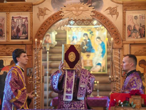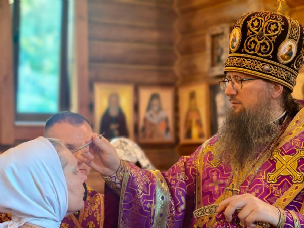 За богослужением владыка Павел совершил чин освящения пяти хлебов, вина и елея. Во время вечерни всех молящихся помазали священным елеем, символизирующим милость Божию ко всем людям.