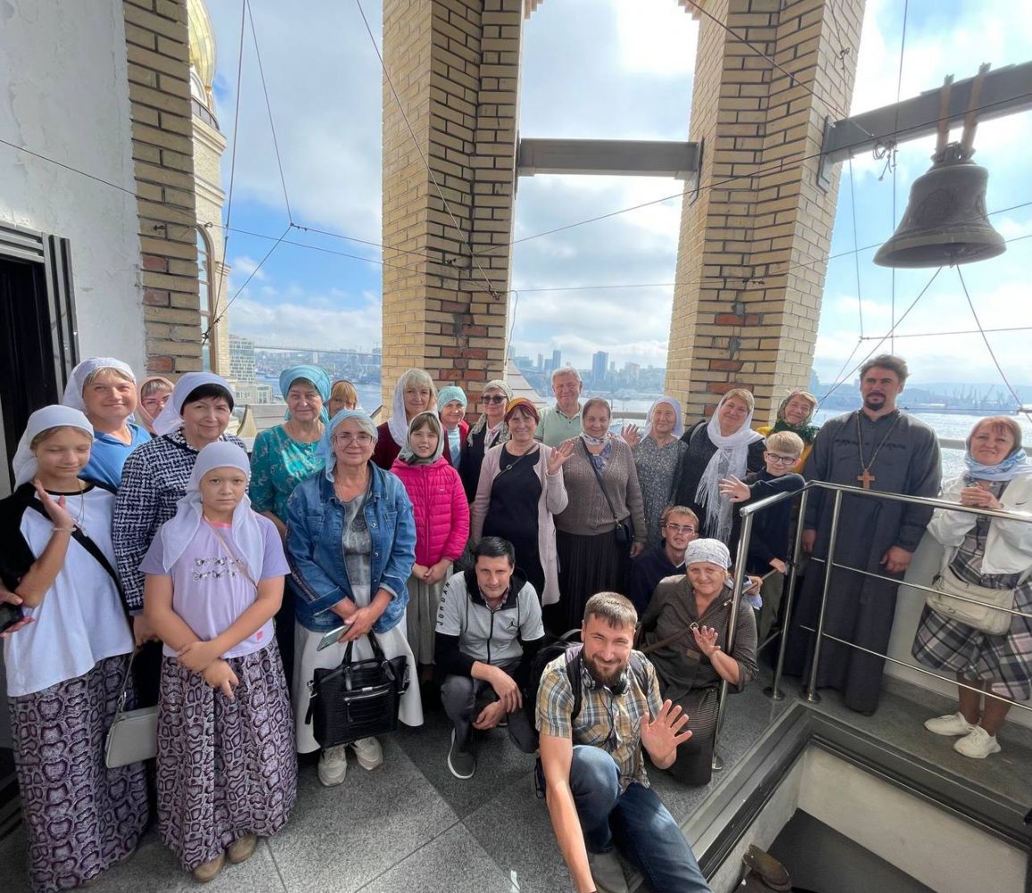 4 октября Спасо-Преображенский собор посетила группа прихожан из Арсеньевской епархии во главе иереем Михаилом Котенко, настоятелем храма Архангела Михаила г. Арсеньева. После Божественной литургии и молебна, поклонившись частице Пояса Пресвятой Богородицы, паломники побывали в Музее Приморской митрополии. Обзорную экскурсию по Музею и собору с подъёмом на колокольню провела Светлана Сергеевна Руснак.