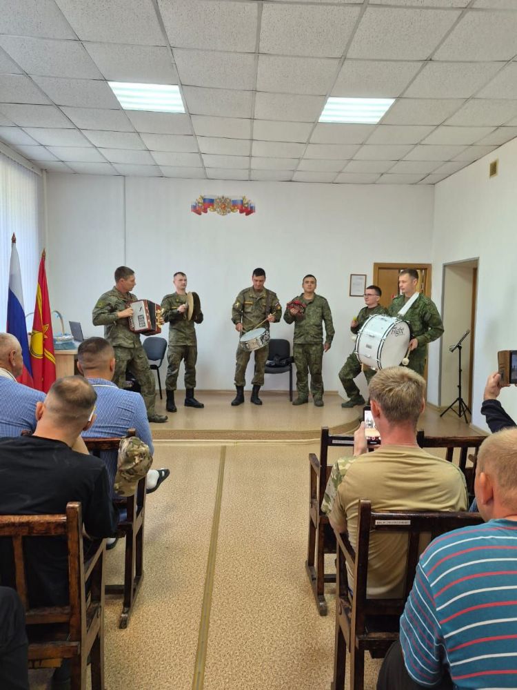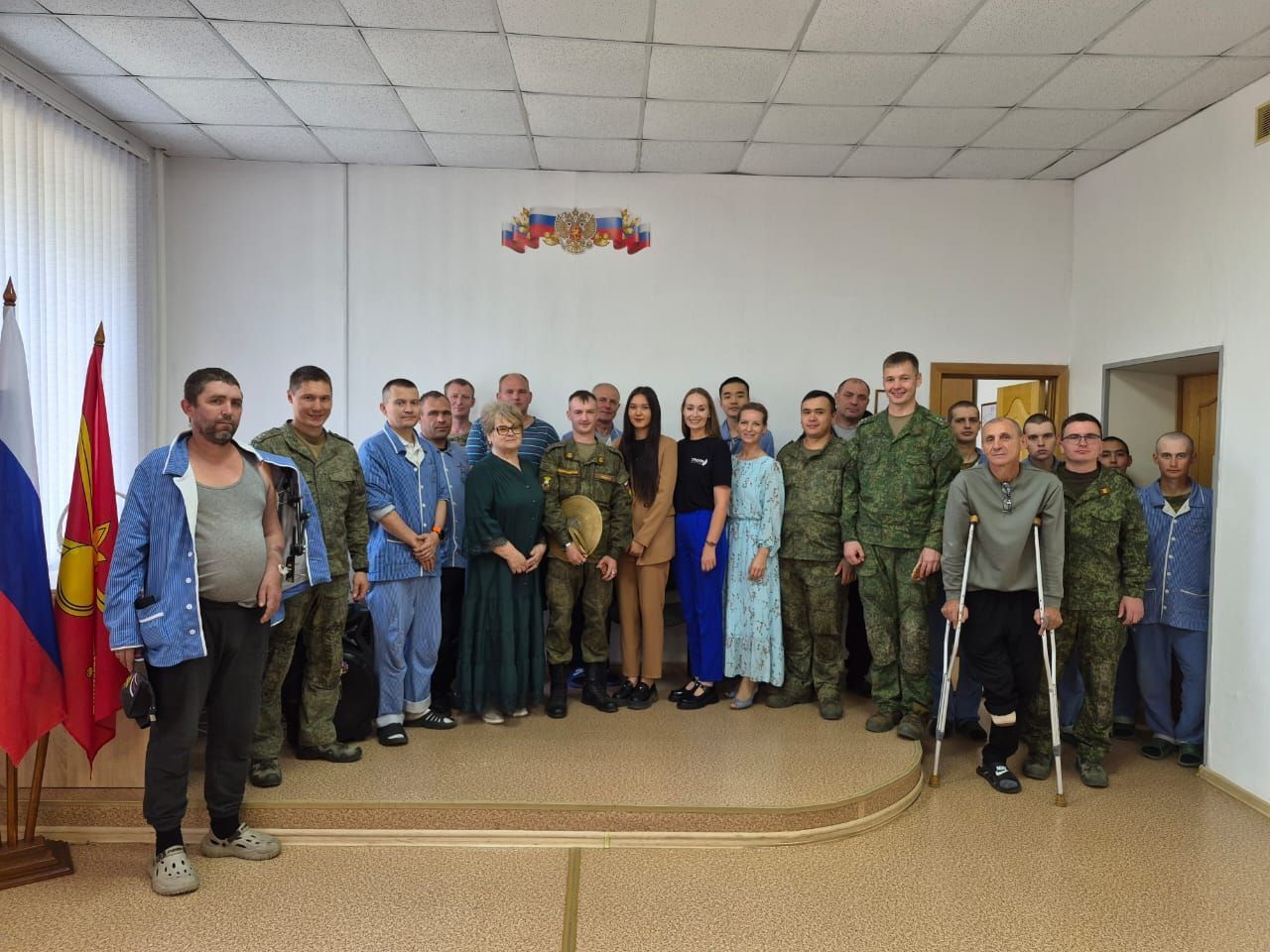 1 октября прихожане храма Покрова Пресвятой Богородицы города Уссурийска и творческий коллектив 60-й бригады из с. Монастырище под руководством военного дирижера Антона Карина посетили госпиталь в Сергеевке, где проходят лечение участники СВО. Встреча прошла в военном клубе госпиталя.