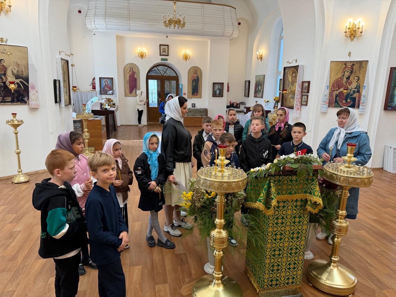 Особое внимание на экскурсии было уделено прп. Сергию Радонежскому, день памяти которого праздновался накануне. Виктория Владимировна разъяснила, что прп. Сергий Радонежский является покровителем учащихся и учителей, и что каждый может обратиться к нему за духовной поддержкой в процессе обучения. Ребята приложились к иконе прп. Сергия Радонежского, поставили свечи и получили благословение.
