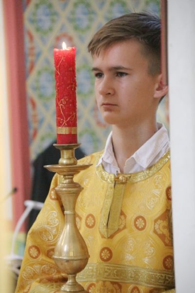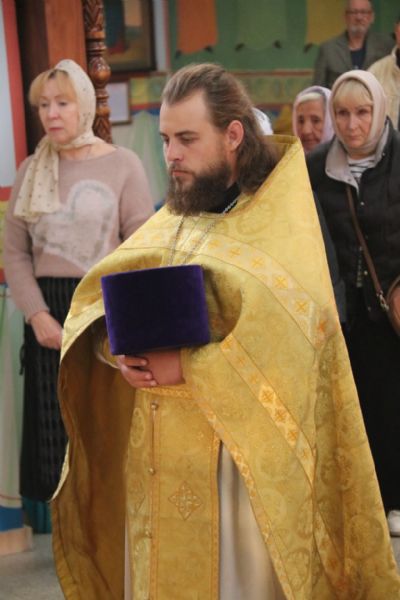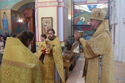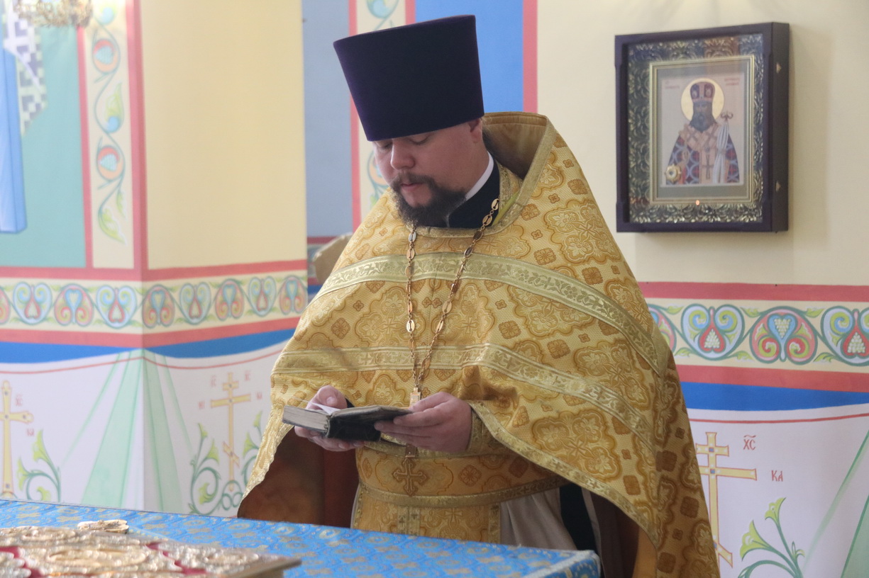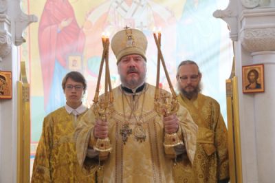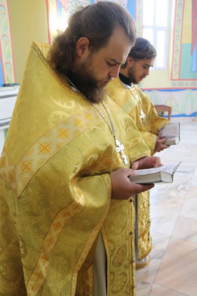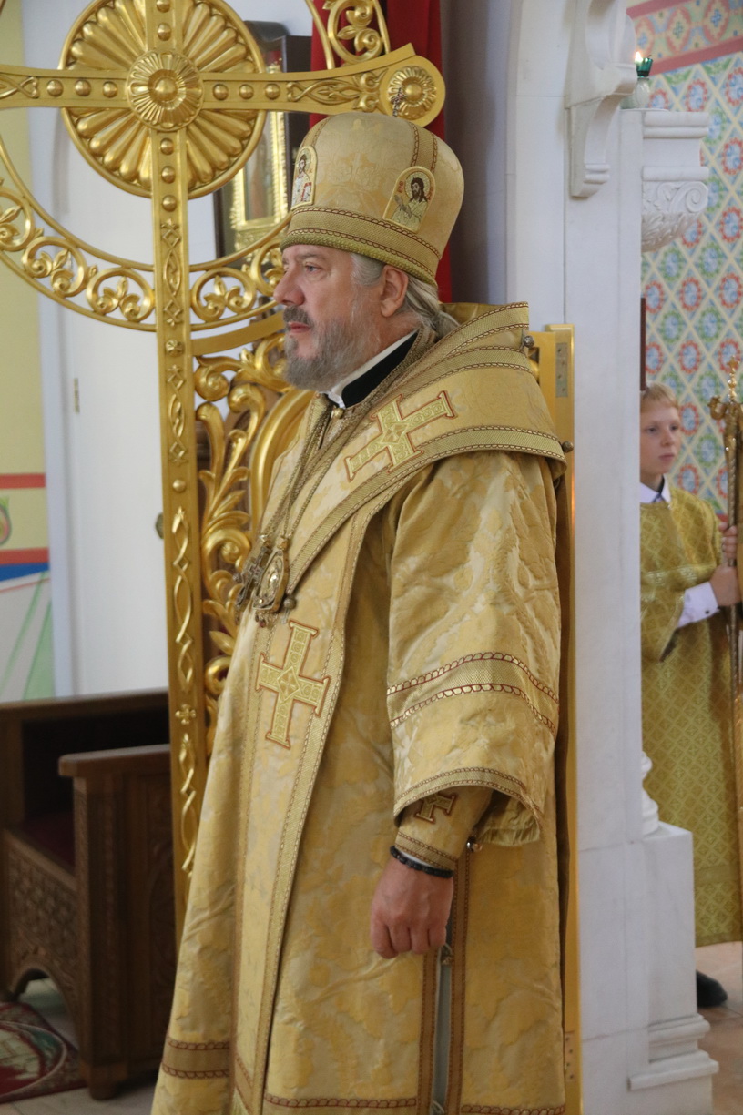 Его Преосвященству сослужили: иерей Андрей Попов; иерей Иоанн Гречишников и Илия Гречишников