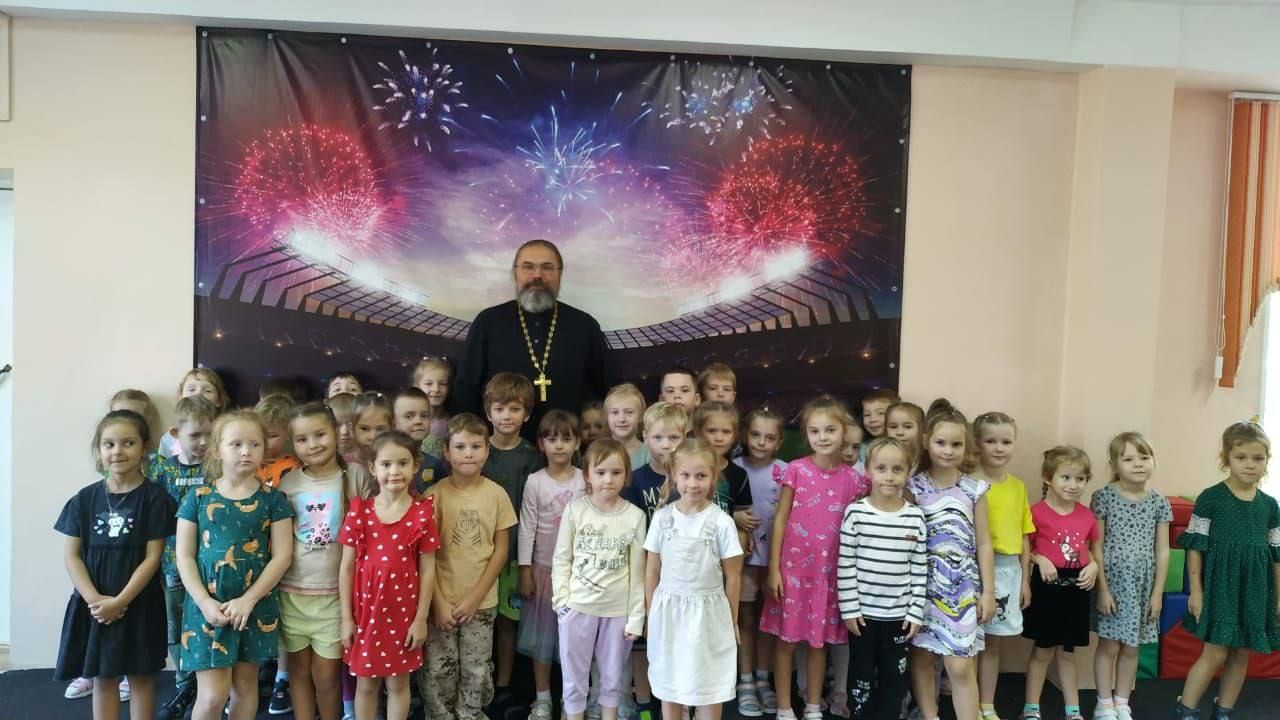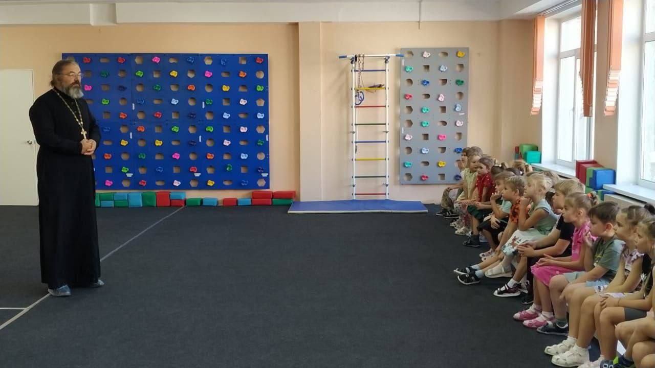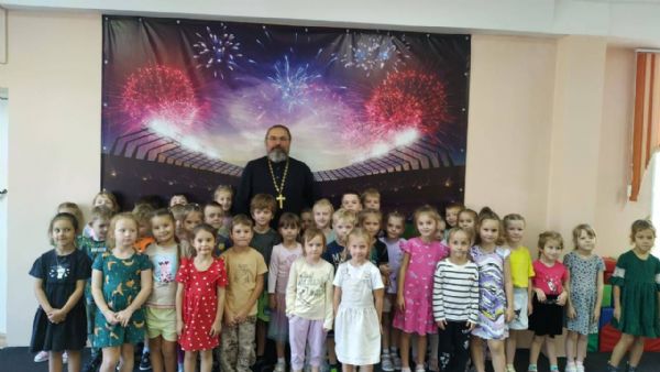 После богослужения отец Илия провел беседу с воспитанниками старших групп. Батюшка рассказал ребятам о Православной вере и о ее значимости в жизни человека.