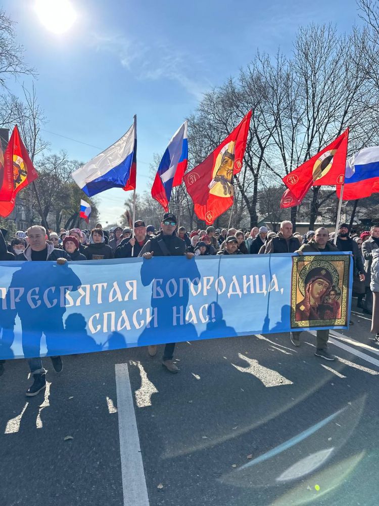 В День народного единства и день празднования в честь Казанской иконы Божией Матери, верующие приморской столицы прошли крестным ходом по Океанскому проспекту – от храма Покрова Пресвятой Богородицы до Спасо-Преображенского кафедрального собора