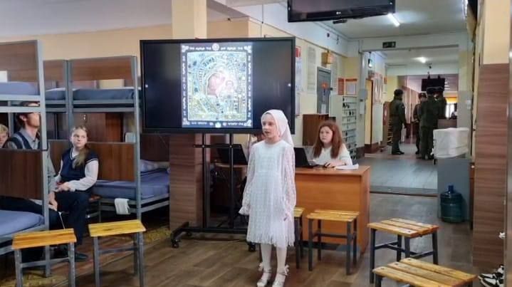 В своем выступлении ребята рассказали о том, как была обретена икона, о взаимосвязи двух праздников, а также о событиях, произошедших в России в период Смутного времени. Особое внимание было уделено роли святыни в победе над иностранными интервентами.