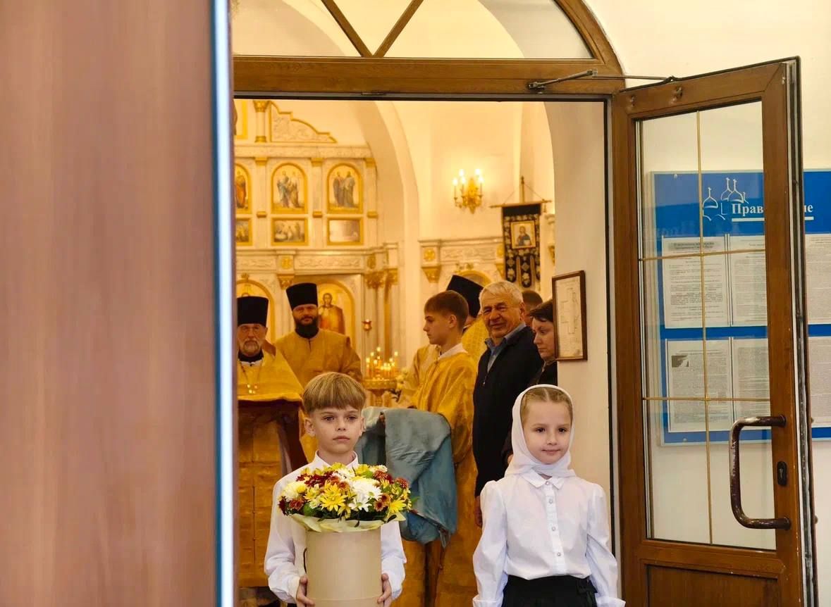 На входе в храм архипастыря встретили дети и преподнесли букет цветов. Вознести свои молитвы пришли около 60 верующих.