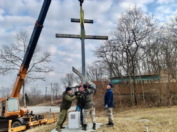 Батюшка выражает сердечную благодарность предпринимателям Сергею Кудлаю и Владимиру Захарову, прихожанам храма, клубу «Держава», а также Славянскому судоремонту заводу за помощь в создании и установке поклонных крестов.