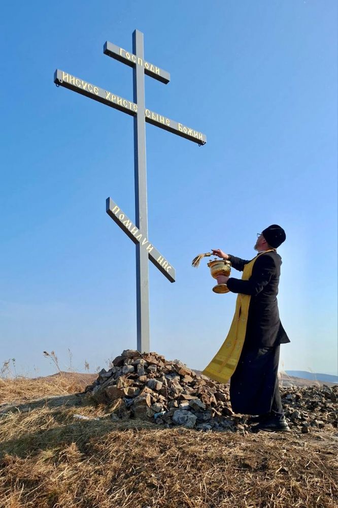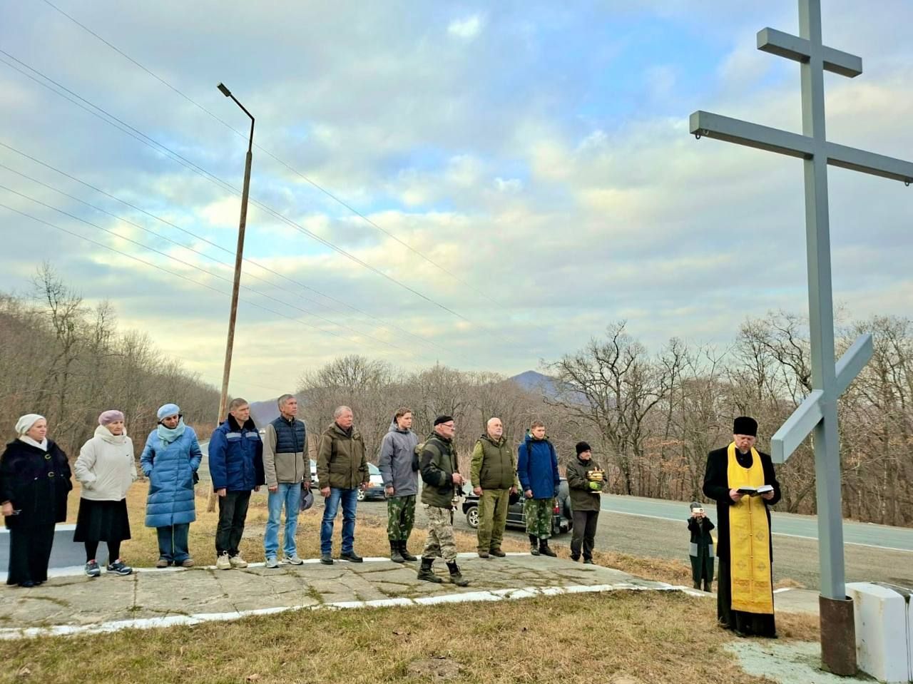 15 ноября прихожане храма Рождества Христова п. Славянка совершили богоугодное дело — восстановили и освятили два поклонных креста в поселке.