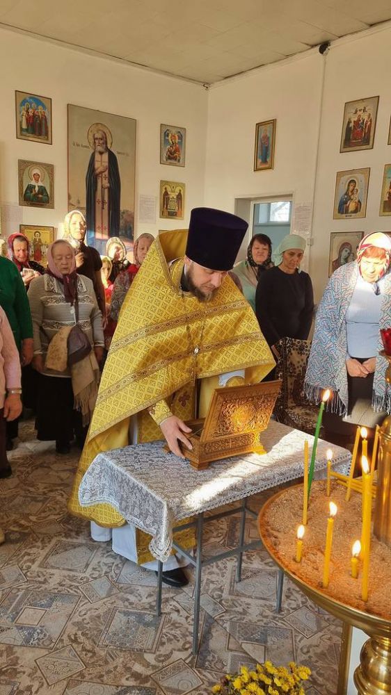 Святыню у входа в храм торжественно встретили настоятель храма иерей Глеб Журавлёв и прихожане. По окончании Божественной литургии были прочитаны молитвы у мощей угодников Божиих. После отец Дионисий обратился к верующим со словом, в котором раскрыл значение и смысл Божественной литургии и Таинства Евхаристии.