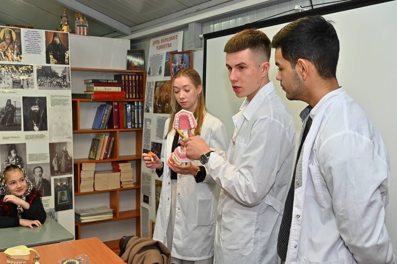 Урок посетили как дети, так и взрослые прихожане. Будущие стоматологи рассказали о важности гигиены, правильной технике чистки зубов, а также о профилактике стоматологических заболеваний. Особый акцент был сделан на взаимосвязи физического здоровья и общего благополучия человека.