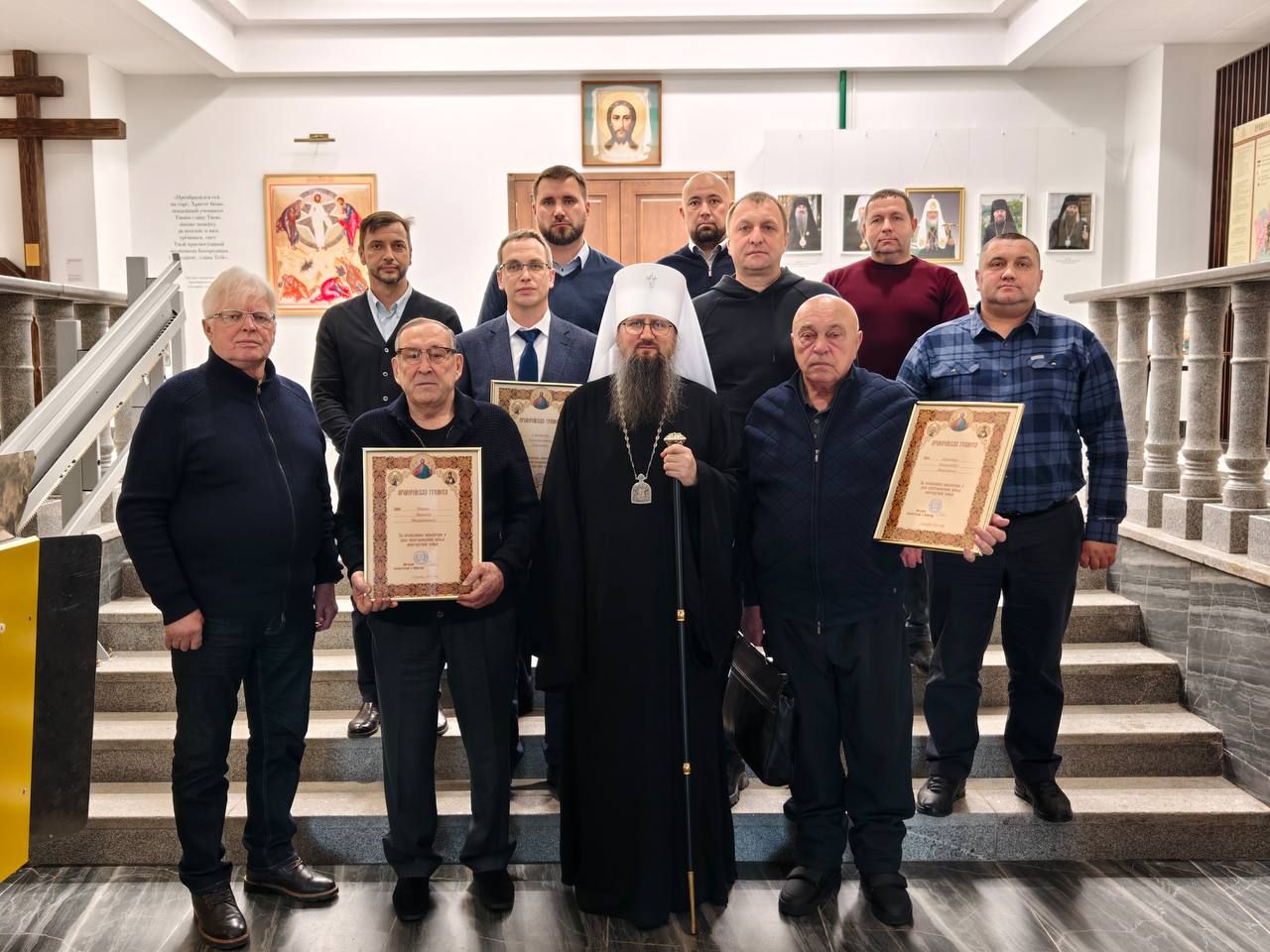 В завершение мероприятия митрополит Павел вручил архиерейские грамоты Константину Степанову, Леониду Ивлеву и заместителю генерального директора ООО «Лесозаводский ЛПК» по строительству Александру Шумейко за проявленное милосердие в деле восстановления жилья многодетной семьи Архиповых из с. Спасское, пострадавшей от пожара.