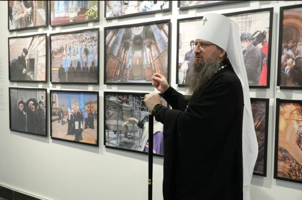 Затем гости спустились в стилобатную часть здания. Правящий архиерей рассказал о некоторых экспонатах Музея Приморской митрополии и поделился многотрудной историей строительства кафедрального собора.