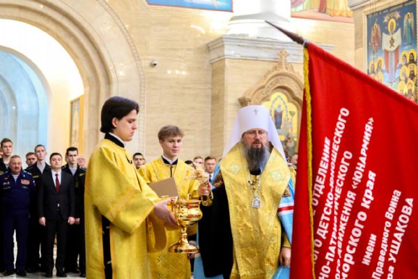 24 декабря в Спасо-Преображенском кафедральном соборе г. Владивостока состоялось освящение знамени регионального отделения Всероссийского детско-юношеского военно-патриотического общественного движения «Юнармия» Приморского края имени св. праведного воина Феодора Ушакова.
