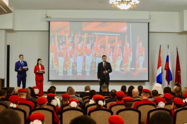 По окончании проповеди все присутствующие спустились в зал Церковных собраний, где началась официальная часть мероприятия. От лица губернатора Приморского края Олега Кожемяко поздравил членов «Юнармии» глава департамента внутренней политики Приморья Александр Худоложный.