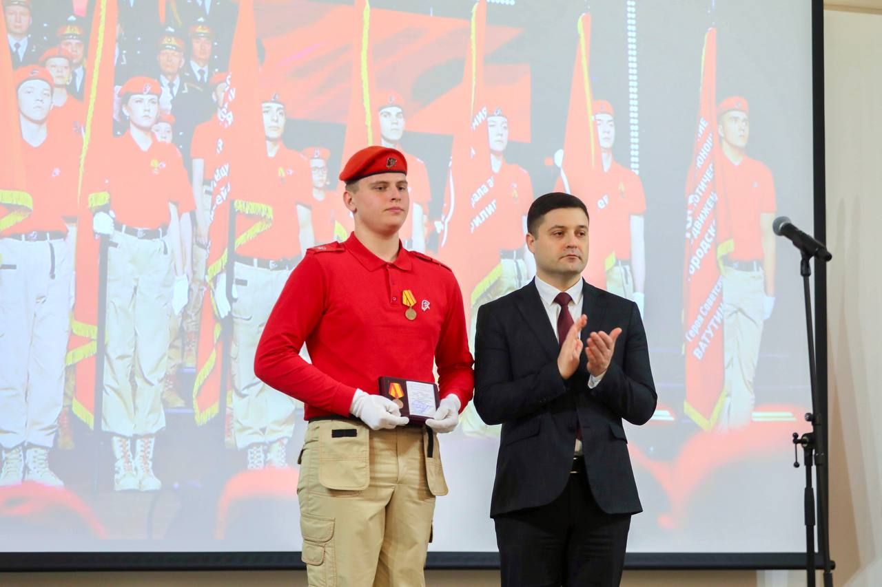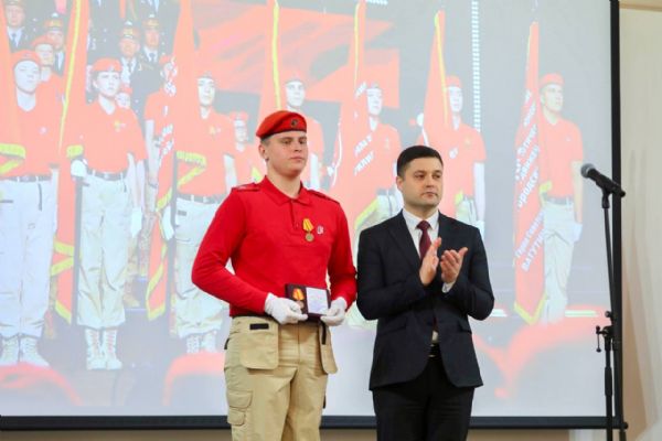 Также в этот день отметили наградами участников регионального движения «Юнармия», кто показал особые достижения в уходящем году. В завершение мероприятия член «Юнармии» Виолетта Коновалова исполнила песню «С чего начинается Родина» Вениамина Баснера.