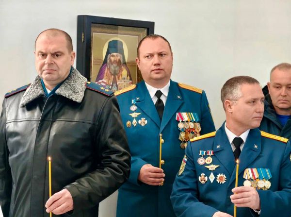 За богослужением молился генерал-лейтенант Роман Чурсин, начальник Главного управления МЧС России по Приморскому краю.