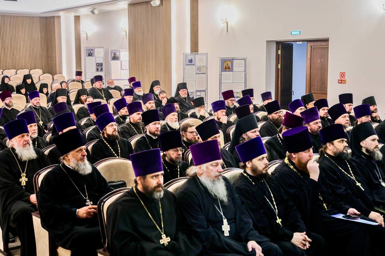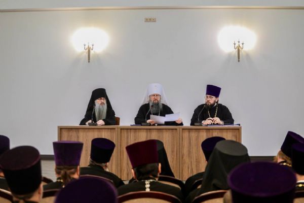 Встреча началась с благодарственного молебна, который совершили митрополит Владивостокский и Приморский Павел и епископ Уссурийский Иннокентий в сослужении духовенства епархии. После богослужения владыка Павел обратился к священникам со словом, в котором пояснил сегодняшнее евангельское чтение и дал наставление: