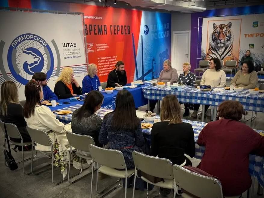 26 декабря в Штабе общественной поддержки г. Владивостока клуб «Ты не одна» собрал жён и матерей участников СВО, участниц проекта «Жизнь после Победы» — учащихся Высшей партийной школы.