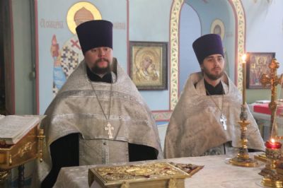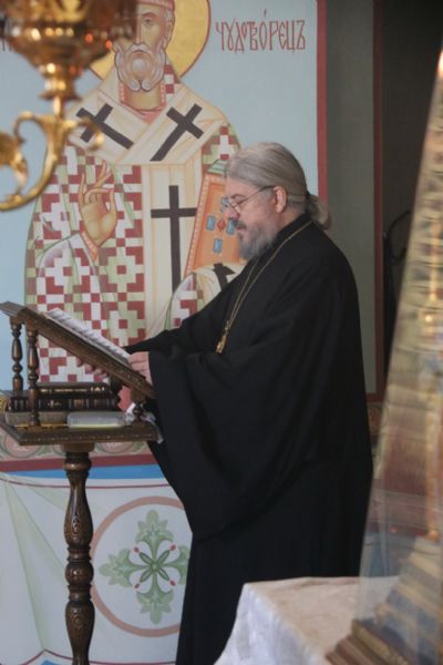 Его Преосвященству сослужили: иерей Андрей Калнин; иерей Андрей Попов; иеромонах Ермоген(Крещенко) и иерей Илия Гречишников.