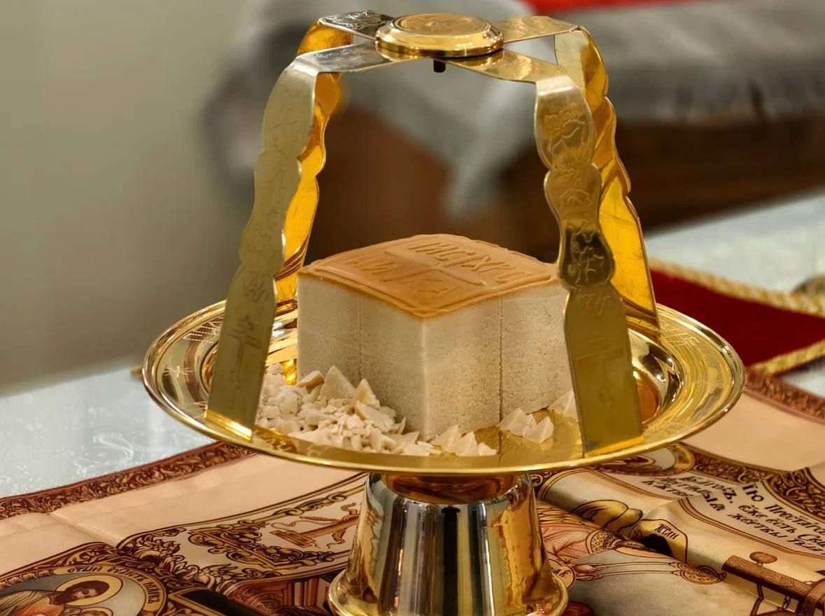 За богослужением глава митрополии совершил чин великого освящения воды. Все прихожане были окроплены освященной водой.