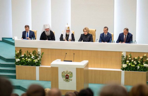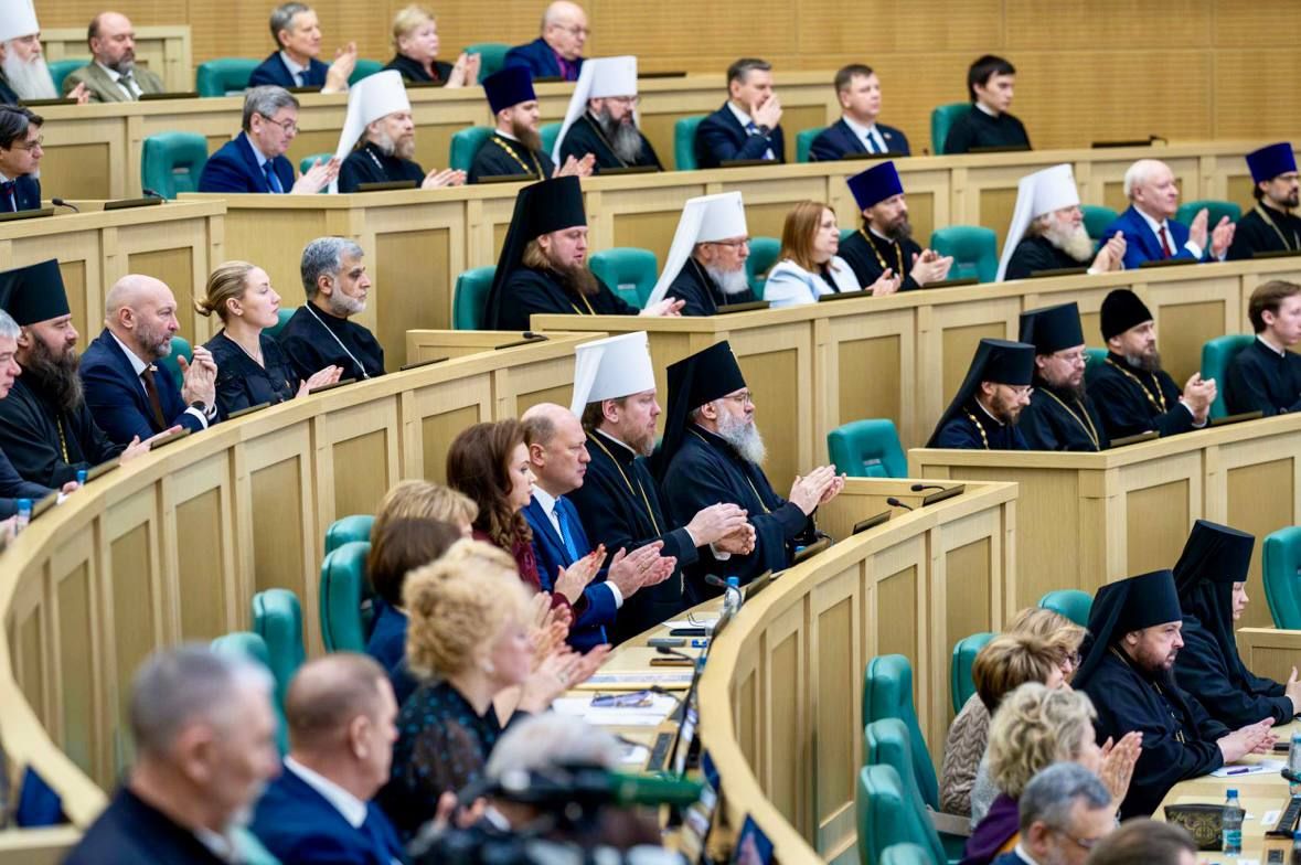 29 января в Совете Федерации Федерального Собрания Российской Федерации в Москве на XIV Конгрессе Рождественских Парламентских встречах в рамках XXXIV Международных Рождественских образовательных чтений состоялось пленарное заседание. Возглавили собрание Святейший Патриарх Московский и всея Руси Кирилл и председатель Совета Федерации Федерального Собрания Российской Федерации Валентина Матвиенко.