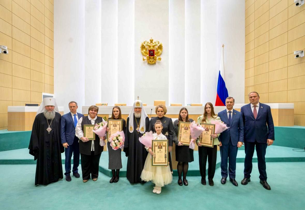 В завершение заседания Предстоятель Русской Церкви и председатель Совета Федерации вручили грамоты и подарки победителям конкурсов «Красота Божьего мира» и «За нравственный подвиг учителя».