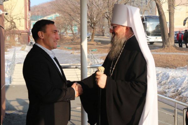 13 февраля по завершению координационного совета по культуре митрополит Владивостокский и Приморский Павел провел рабочую встречу с главой г. Находки Тимуром Магинским.
