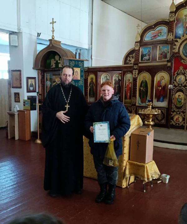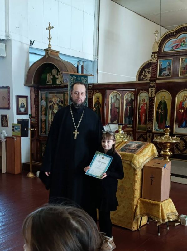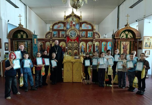 Иерей Андрей Мельников, настоятель храма, наградил участников, призёров и победителей конкурса. Ребятам были вручены грамоты и памятные призы. В самом храме организовали выставку конкурсных работ.