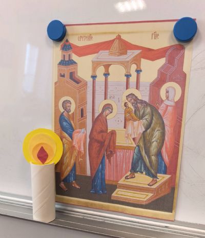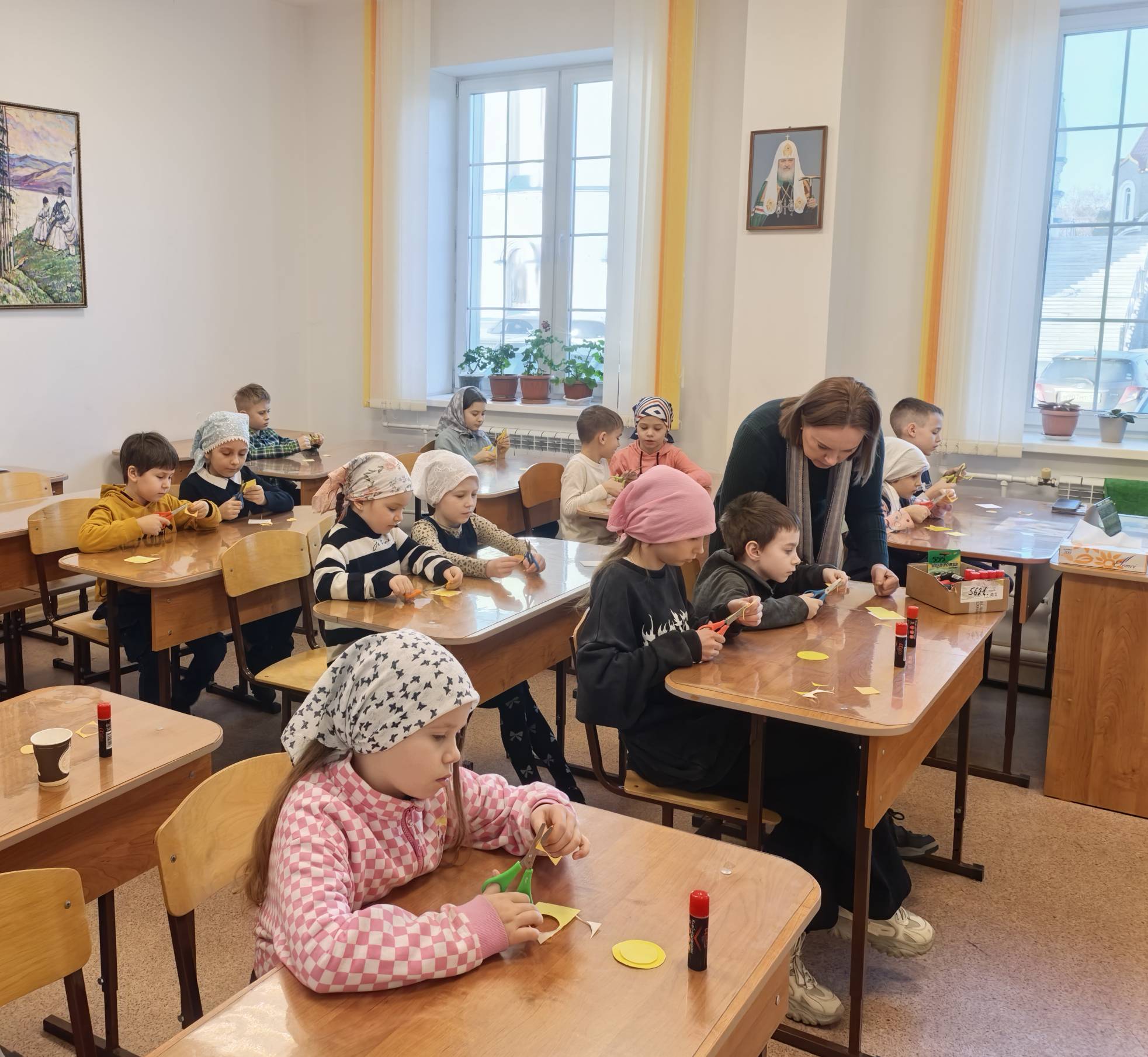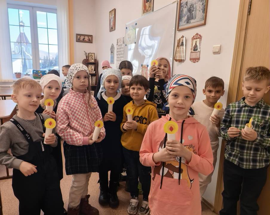 Занятие для воспитанников средней возрастной категории (8-12 лет) провела Зобнина Галина Анатольевна. Урок для воспитанников младшей возрастной категории (5-7 лет) провели педагоги Аксёнова Анна Михайловна и Стрельникова Кристина Анатольевна. Малыши узнали про традицию освящения свечей в праздник Сретения и выполнили творческое задание - поделку «свечечка».