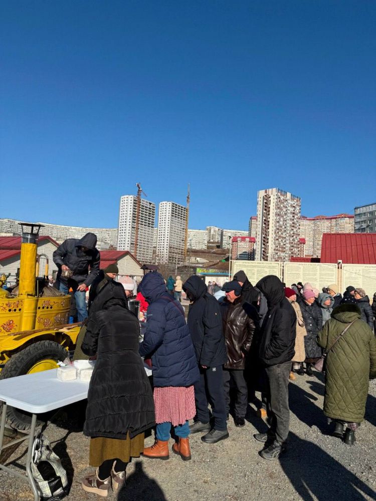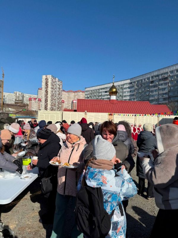 15 февраля на территории храма свт. Спиридона Тримифунтского г. Владивостока собрались прихожане и жители близлежащих домов, чтобы отметить праздник Сретения Господня.